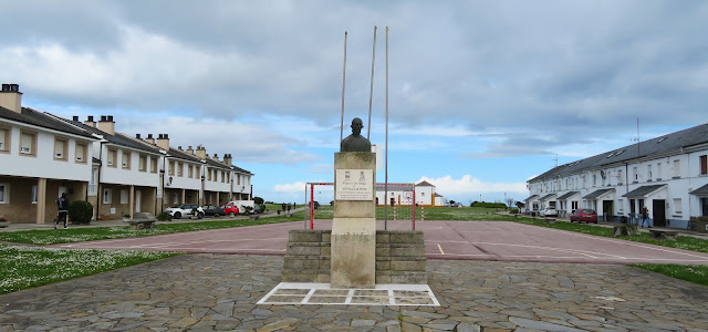 Xa podemos ver de novo Puerto de Vega. Atopamos este monumento da cola dunha balea. Realizada en aceiro por un artista local, é unha homenaxe á xente mariñeira de Puerto de Vega.